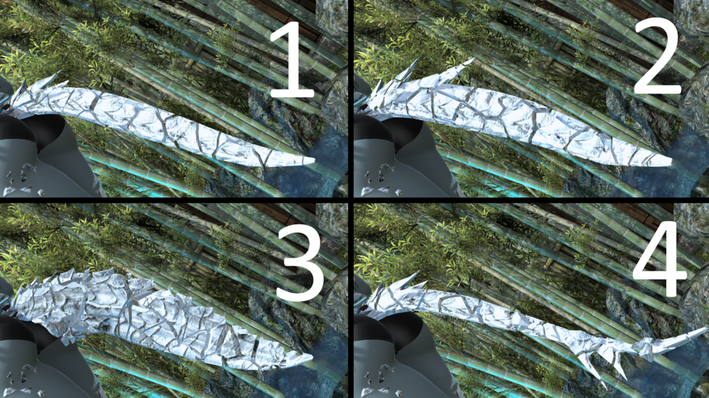 - Either of the 4 faces' horns applied to the face you wish! Do you want your mature-looking face 3 to have the fishfin style of horns from face 2? Absolutely!